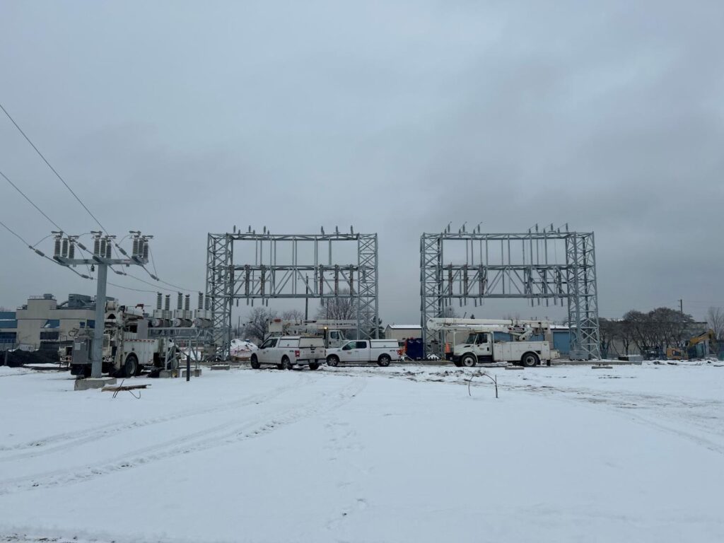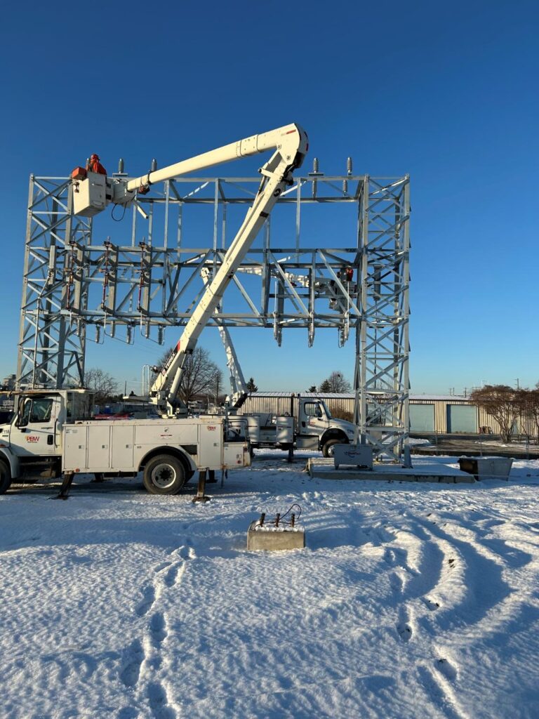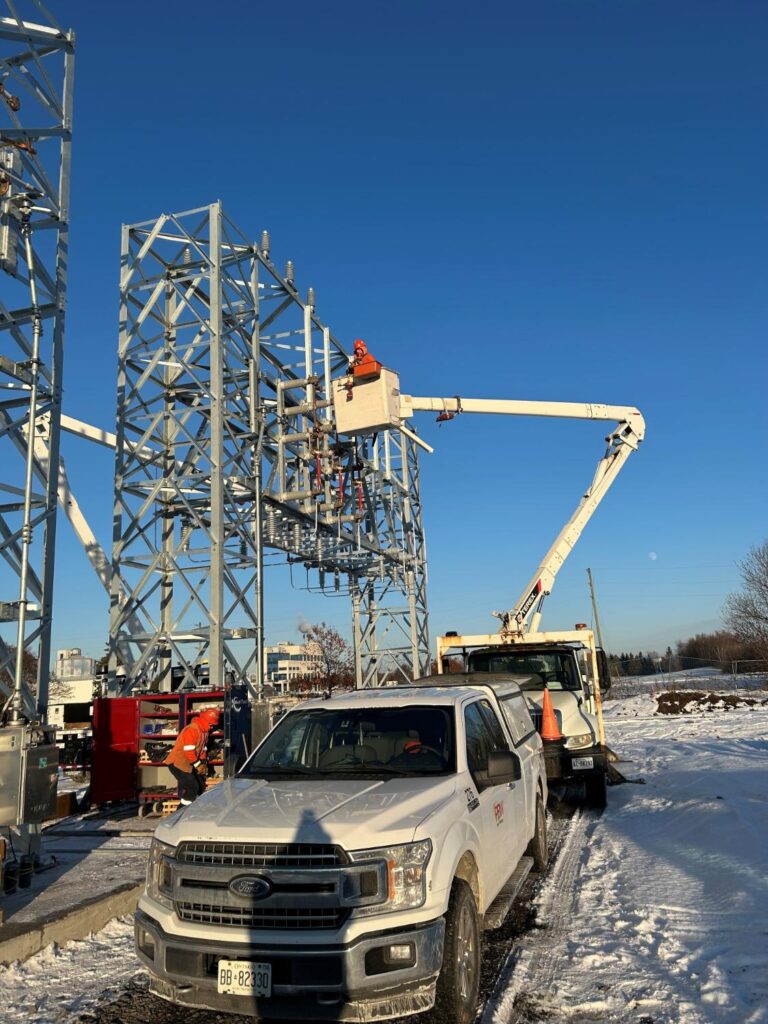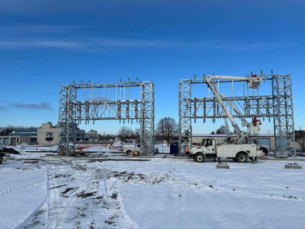 Installation of (2) new 44kV Parallel Overhead Feeders from Hydro Ottawa, using Custom Towers pre-fabricated by MultiTech Trades Corporation Metal Shop.